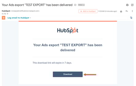 - You'll receive an email from HubSpot in your inbox. In the email, click Download, then save the file to your device.