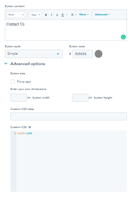 You can manually adjust the size of your CTA or use custom CSS to automatically fill width of the CTA's container or module. If you are embedding an i mage CTA on your non-HubSpot site , you may need to apply additional CSS declarations (such as width: 100%;) within your stylesheet to make the image CTA responsive.To edit the size of your button CTA: