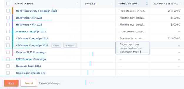 After you've created your campaign in HubSpot, you can export your campaign details, view and filter your campaigns, clone a campaign and its assets, or delete a campaign altogether.