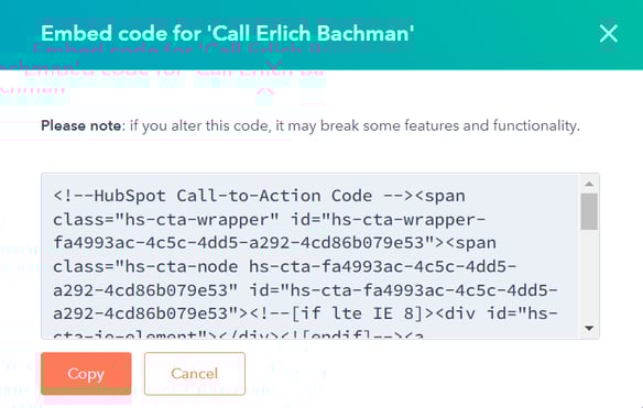 - If you notice your CTA not working in WordPress or the embed code being altered when you view the live page, you may need to insert the CTA using a plugin to make sure the embed code stays intact.