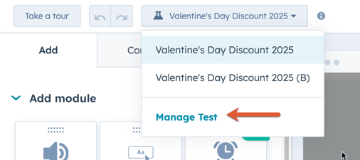 - In the top left, click the dropdown menu and select Manage Test.
