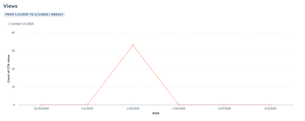- View: review the CTA views over time for each variant. You can hover over a data point in the report to view a breakdown of metrics.