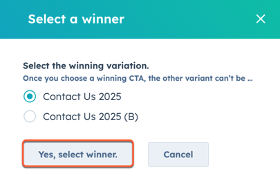 - In the dialog box, select your winning variant. Then, click Yes, select winner.