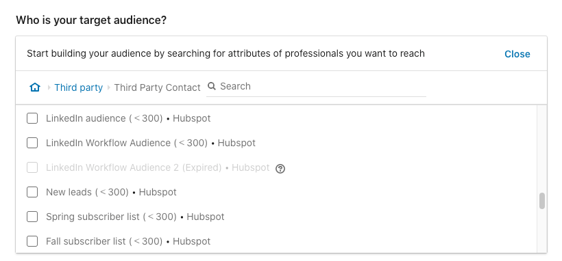 Eine HubSpot-Zielgruppe für vorhandene LinkedIn-Kampagnen auswählen