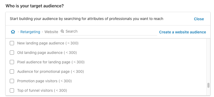 - Wählen Sie Ihre Zielgruppe aus den verfügbaren Optionen aus.