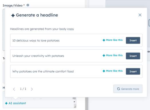 - Um ähnliche Überschriften aus einer bevorzugten Überschrift zu generieren, klicken Sie neben der Überschrift auf Mehr wie diese.