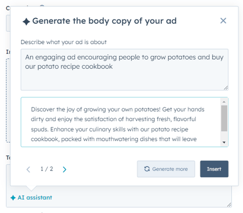 Verwenden Sie den AI-Assistenten zur Erstellung von Facebook- oder LinkedIn-Anzeigen