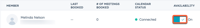 Bitte beachten: Die Meeting-Rotation überspringt ein Mitglied nur, wenn der Schalter Verfügbarkeit dieses Mitglieds deaktiviert ist. Wenn der Schalter Verfügbarkeit aktiviert ist, wird er weiterhin in der Rotation angezeigt, auch wenn sein verknüpfter Kalender keine verfügbaren Zeiten für Buchungen aufweist.