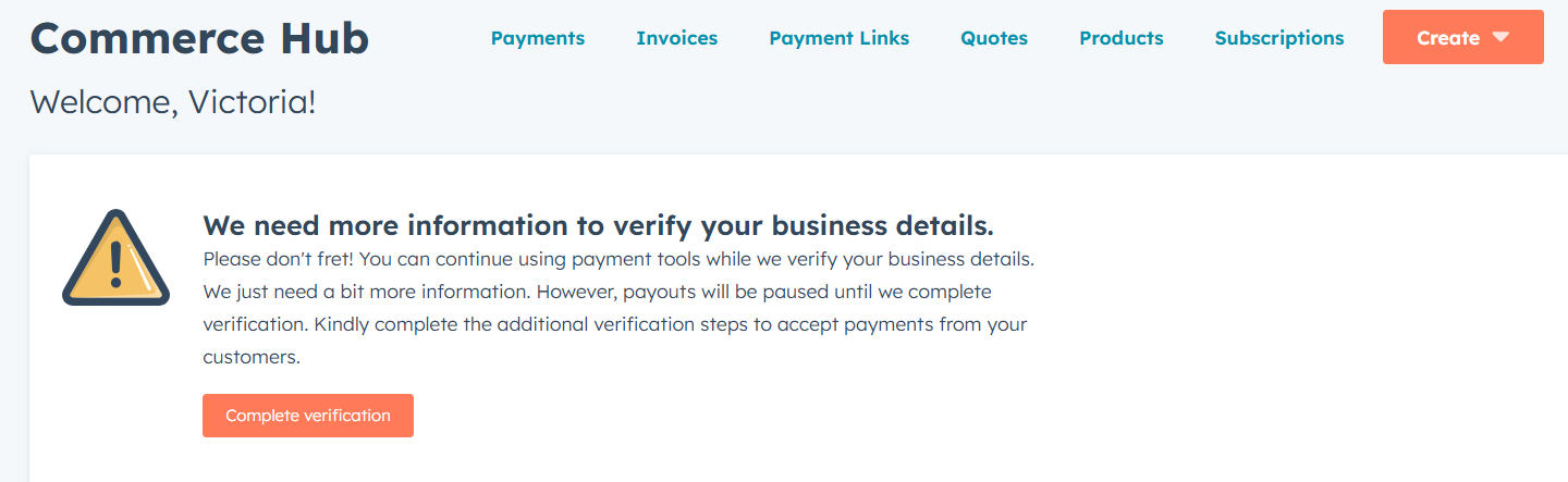 - Sie sehen auch eine In-App-Benachrichtigung unter "Commerce-Übersicht > " in Ihrem HubSpot-Account.