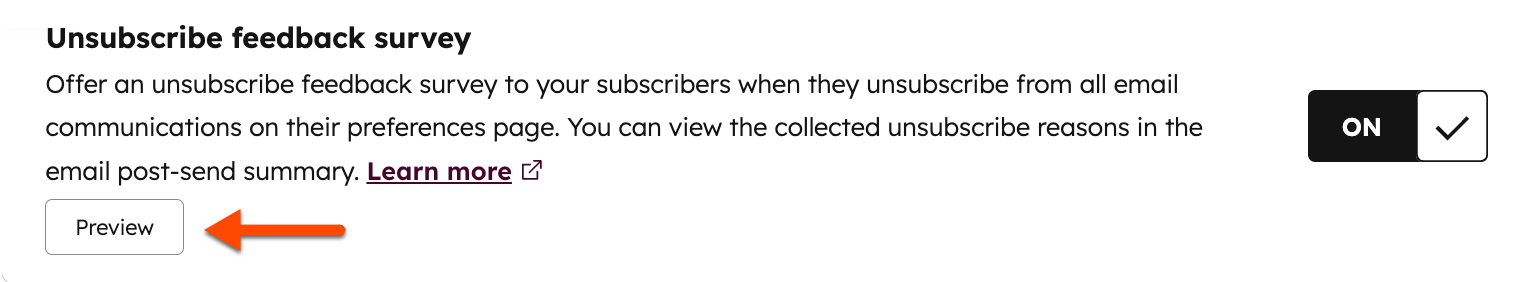 - Para obtener una vista previa de la encuesta antes de activarla, haga clic en Vista previa en la sección Anular suscripción a encuesta de feedback .