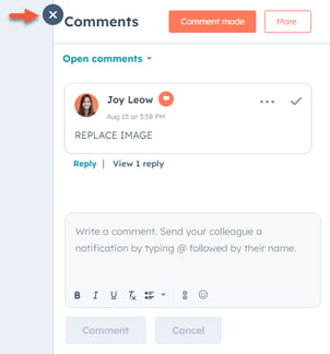 - Dans votre compte HubSpot, naviguez jusqu'à l'actif pour lequel vous souhaitez résoudre les commentaires.