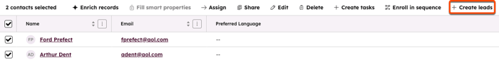 - Sur la page index des contacts, sélectionnez les cases à cocher à côté des contacts pour lesquels vous souhaitez créer des leads.