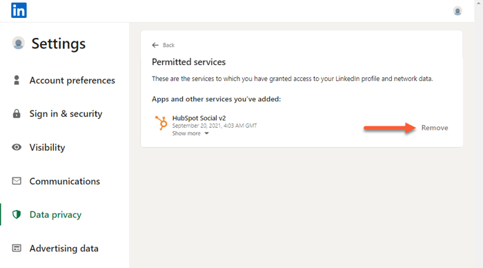 - Revenez à votre compte HubSpot et reconnectez votre compte LinkedIn.