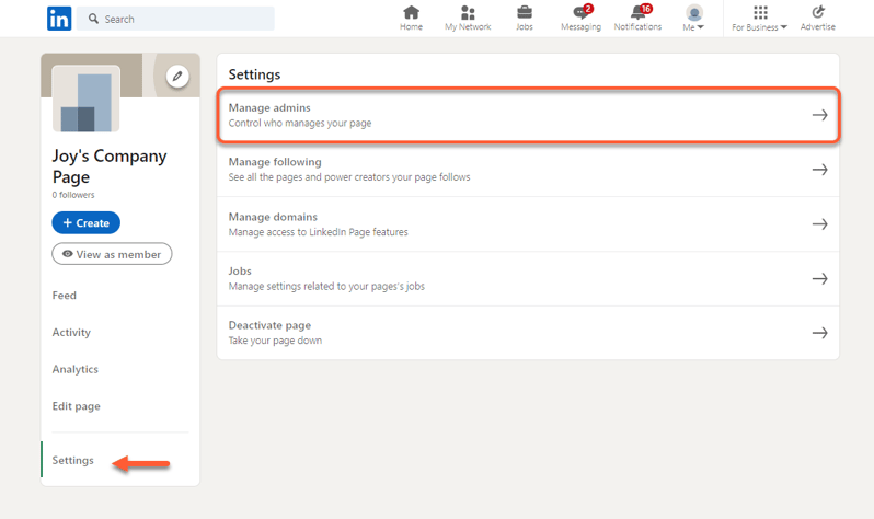 Pour vous assurer que vous pouvez connecter votre page à HubSpot, vérifiez que votre compte LinkedIn dispose des autorisations nécessaires pour l'administration de la page LinkedIn :