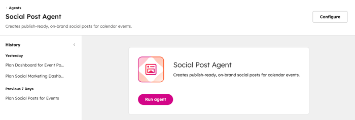 Une fois que votre agent Breeze pour les posts sur les réseaux sociaux est activé, vous pouvez l’exécuter manuellement pour générer de nouvelles suggestions de posts pour les réseaux sociaux.