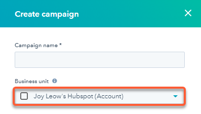 Quando si crea una nuova campagna, è possibile associarla a una business unit. Le campagne esistenti rimarranno associate alla business unit predefinita dell'account.