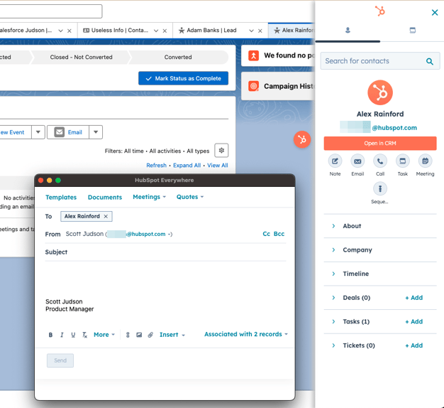 Utilizzare l'estensione HubSpot Sales Chrome con i record in Salesforce