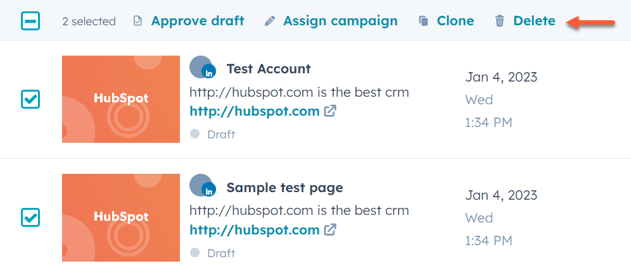 - I post di Facebook, LinkedIn e X possono essere eliminati tramite HubSpot dopo la loro pubblicazione. A causa delle limitazioni dell'API di Instagram, i post di Instagram non possono essere eliminati tramite HubSpot una volta pubblicati e devono essere eliminati direttamente su Instagram.