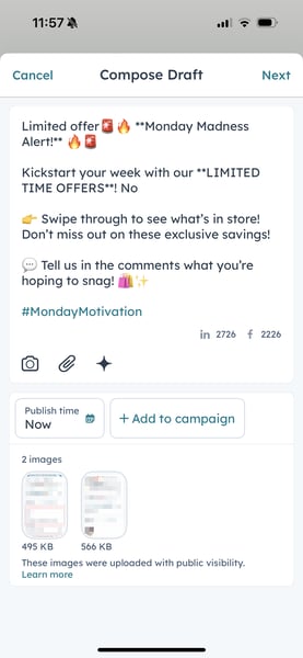 - Se si utilizza un dispositivo Android, è possibile ritagliare le immagini quando si imposta la bozza social: