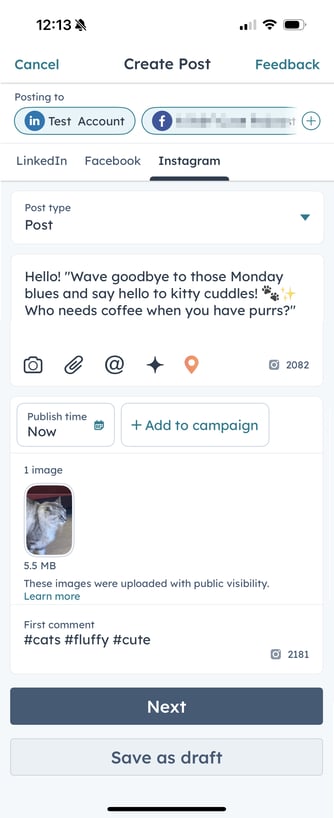Creare e pubblicare post sui social nell'app mobile di HubSpot