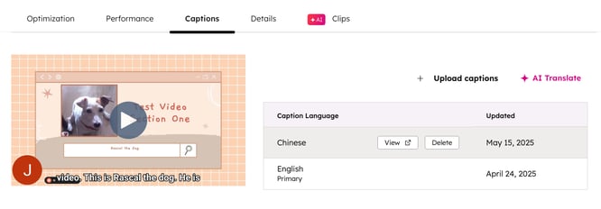 - 別のキャプションを手動でアップロードするには、右上の[ キャプションをアップロード]をクリックします。