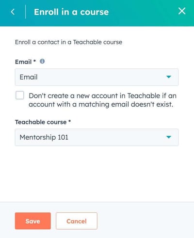 - コンタクトに一致するTeachableアカウントがない場合、HubSpotは自動的にアカウントを作成します。