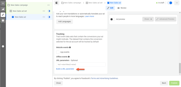 이 문제를 해결하려면 광고를 복제하여 참여가 없는 새 버전을 만드세요. HubSpot의 추적 템플릿을 Facebook 광고 계정의 광고에 수동으로 복사할 수도 있습니다: