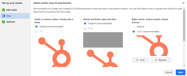이 오류는 광고 이미지를 생성하고 구성할 때 Facebook의 가로 자르기 크기 옵션인 1.91:1을 선택한 경우 발생합니다. |