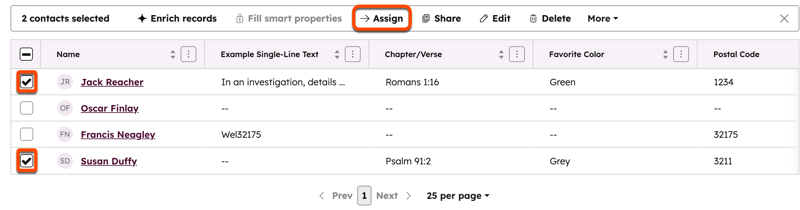 - Marque as caixas de seleção ao lado dos registros que deseja atribuir.