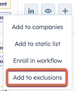 Créditos da HubSpot necessários Para excluir até 100 empresas do propósito de pesquisa da visão geral do propósito de pesquisa e das guias Empresas e adições automáticas, você deve ter Créditos HubSpot.
