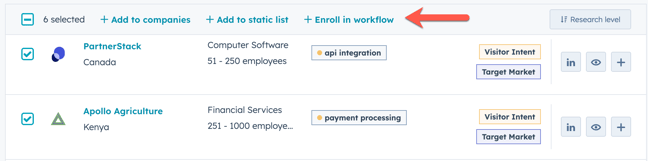Se você tiver uma conta Starter, Professional ou ? Enterprise e sua conta tiver créditosHubSpot, você poderá adicionar empresas do research Intent ao seu Ao adicionar empresas do propósito de pesquisa, os usuários devem ter permissões de acesso de enriquecimento de dados.