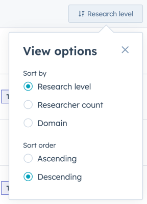 - Filtrar por segmento: se você tiver um Starter, Professional, ou Professional , ou sua conta tiverHubSpot Credits, você pode incluir ou excluir segmentos específicos de empresas em views de intenção de pesquisa.