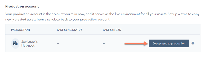 - I avsnittet Produktionskonto klickar du på Konfigurera synkronisering till produktion.