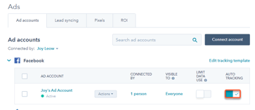 หลังจากเชื่อมต่อบัญชีโฆษณาของคุณกับ HubSpot และเปิดการติดตามอัตโนมัติแล้ว HubSpot จะพยายามใช้การติดตามกับโฆษณาทั้งหมดในบัญชีโฆษณา