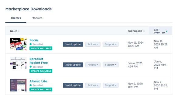 若要尋找從 HubSpot 範本市場購買的所有主題: