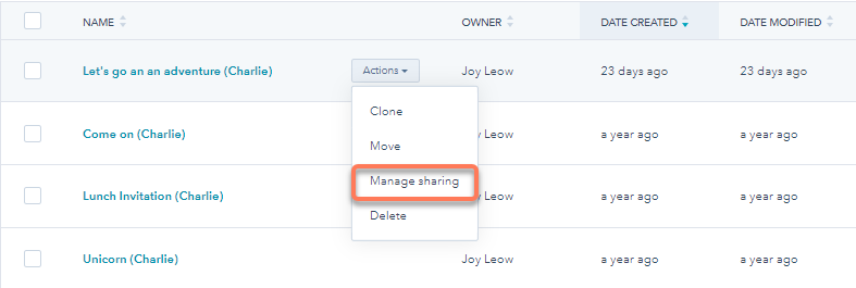 - 在您的HubSpot帳戶中,導航到序列、文件、劇本或範本。